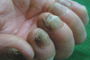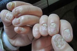 2、引起并发症:灰指甲严重时可引起疼痛和不适,指甲一旦受到各种外伤,细菌易于长驱直入,从而引发甲沟炎、甲床炎、手指脓皮病等并发症,使病人发生丹毒或蜂窝组织炎等全身症状严重的疾病。