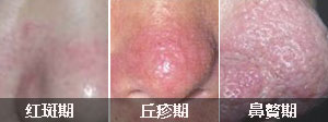 症状:面部中央的慢性皮肤炎症,表现为红斑、毛细血管扩张和有炎症的毛囊丘疹等