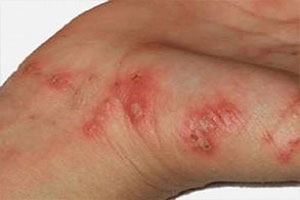 4、湿疹:湿疹为一过敏性疾病,属IV型变态反应。湿疹的原因和诱发的因素常因个体因素和疾病的不同阶段而异,因此不易确定。临床上以瘙痒显著,对称性分布,急性以丘疱疹为主,有渗出倾向,慢性常以苔藓样改变为主及反复发作、易成慢性为其特征。