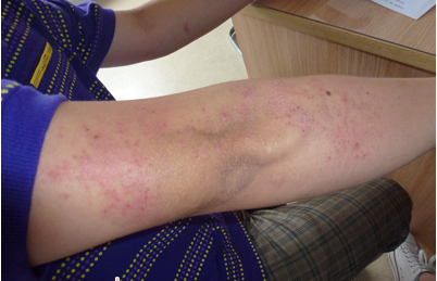 其中丘疹性荨麻疹是儿童及青少年常见的一种风团样丘疹性皮肤病。临床以皮疹发生在叮咬部位,呈风团样反应,中心有水疱,剧烈瘙痒为其特征。春夏季发病较多。皮损多在腰、背及下肢或暴露部位置。