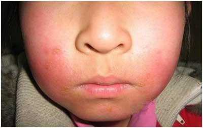 3、面部湿疹: 粟粒大小的丘疹、丘疱疹或小水疱,基底潮红,剧烈瘙痒。