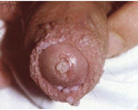 发病时典型的症状为:生殖器会出现鸡冠状、蘑菇状、乳头状肉质赘、小肉芽、小白点、小颗粒或丘疹等。