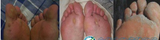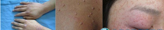二、扁平疣按常发部位,分为面部、手部、脚部扁平疣: