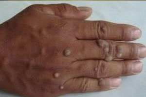 2、症状:初起为针尖大的丘疹,渐渐扩大到豌豆大或更大,呈圆形或多角形,表面粗糙,角化明显,质坚硬,呈灰黄、污黄或污褐色。