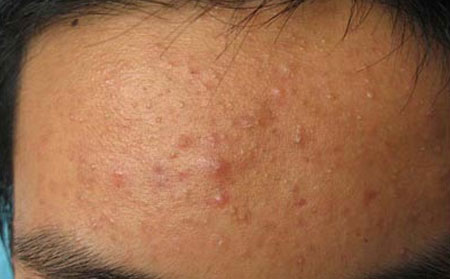 痤疮好发于颜面、胸背部多脂区,偶尔也发生于其他部位,对称分布,眼眶周围常不受侵犯,初起损害多为黑头粉刺,加以挤压,可见由头部呈黑色而体部呈黄白色,半透明的脂栓排除。继而出现红色小丘疹,皮疹顶端可出现小脓疱,破溃或吸收后遗留暂时性色素沉着或小凹状疤痕。少数严重患者,除黑头粉刺、丘疹、脓疱外,还可见有蚕豆至指甲大小的炎性结节或囊肿。囊肿可化脓,形成脓肿,破溃后常形成窦道和疤痕。